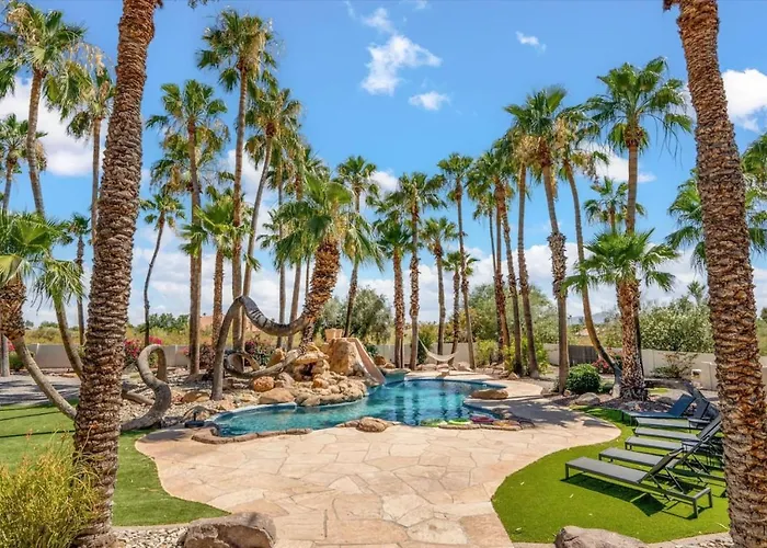 During the stay at Resort Style Estate, 2 Houses, Putt-Putt Course, B-Ball Court, Heated Pool Scottsdale villa, guests can indulge in Jacuzzis and a hot tub or visit Dolphinaris Arizona Aquarium, located 3.2 miles away. The 5-bedroom villa is located in the North Scottsdale district and offers opportunities for billiards in the area.